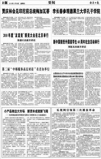 新华社北京9月29日电 9月29日下午,新中国接受外国留学生60周年纪念活动在京举行。中共中央政治局委员、国务委员刘延东在出席活动时强调,要以更加优质的教育、完善的服务发展来华留学教育,深入推动中外人文交流,不断增进中国人民与世界各国人民友谊。