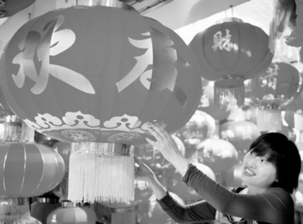 上图 9月28日,义乌国际商贸城市场喜庆用品专区的红灯笼开始热销。 张建成摄(新华社发)
