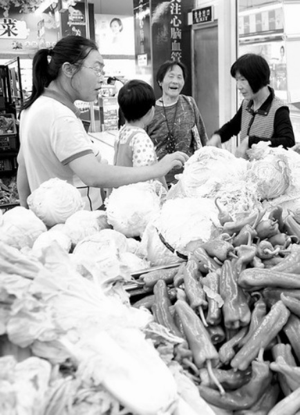 下图 9月27日,市民在连云港一家超市选购农民直供的新鲜蔬菜。 王 春摄(新华社发)