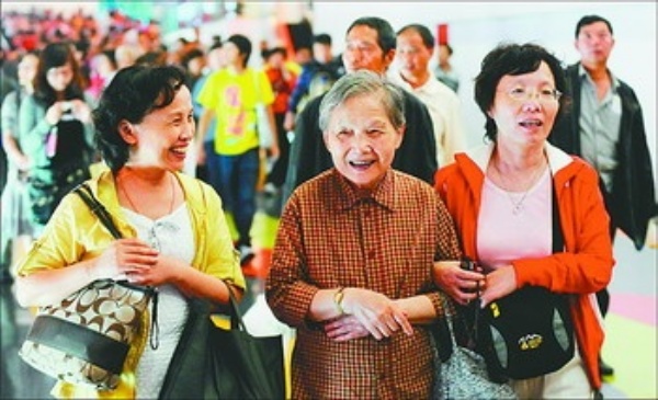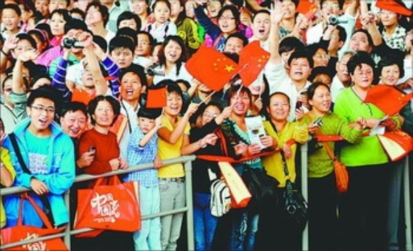 图6 游客们扶老携幼涌向中国国家馆参观。