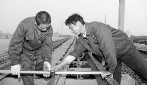 10月2日,在京沪高铁济南西客站建设现场,中国铁建十六局集团的工作人员在精准调整轨道。 新华社记者 郭绪雷摄