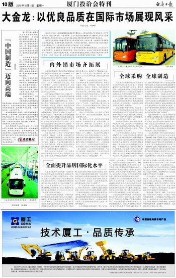 质量管控的国际化。大金龙坚持技术进步不停歇,向高端技术学习,向高标准看齐。客车是一种生产资料,用户大多为运营单位,可靠、耐用、维修及时是他们最看重的。谢卫国说,大金龙目前海外的营销,主要立足于三点:一是产品过硬,技术领先,质量优良,树立了良好的形象;二是好的供应商,提供适配性好的部件;三是良好的质量管控。