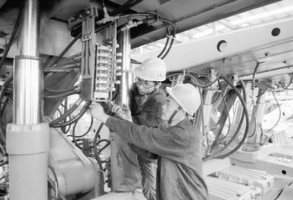 10月12日,山东省新泰经济开发区立业机械装备公司的液压支架制造生产线上,工作人员正在进行设备检测。近年来,该开发区坚持产业结构调整,大力发展新能源、新材料和光纤通信产业,形成了高新技术的产业集群。 本报记者 乔金亮摄
