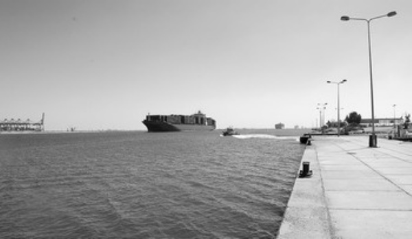 图为苏伊士运河新改造后的航道。这条新改造的航道深度为66英尺,可供世界上64%的油轮和99%的货轮通行。 本报驻开罗记者 胡英华摄影报道