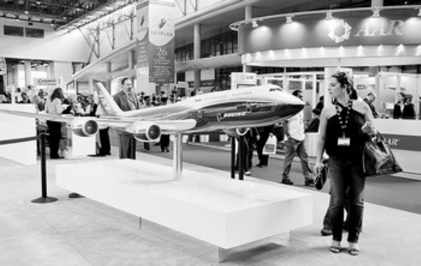 近年来,中东国家被国际航空业界视为全球民用飞机市场增长速度最快的地区。波音公司日前发布的市场研究报告显示,未来20年,该地区各类民用航空器需求总量高达2340架,总价值超过3900亿美元。其中双通道宽体远程客机约1000架,占需求总量的43%;单通道直线客机约1100架,占市场需求的47%。图为波音公司正全力打造的747—8型远程洲际客机模型。 本报驻阿布扎比记者