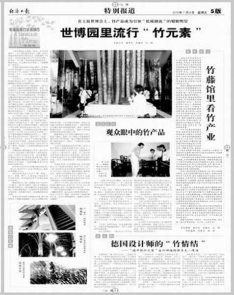 3、《世博园里流行“竹元素”》(2010年7月9日五版)