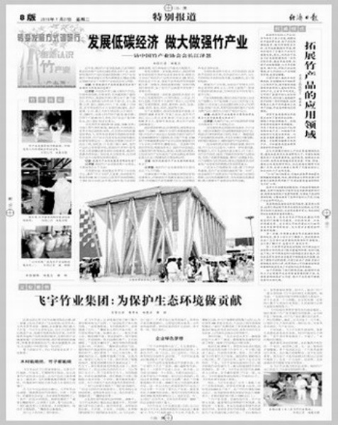 2、《从世博园看竹产业发展》(2010年7月9日一版)