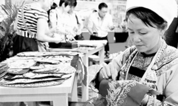 近几年,潘勉多次应邀参加全国各大展销会,从北京奥运会到广州博览会,再到上海世博会,她带着精美的绣品北上南下。仅2008年,她靠经营马尾绣就赚了20万元。