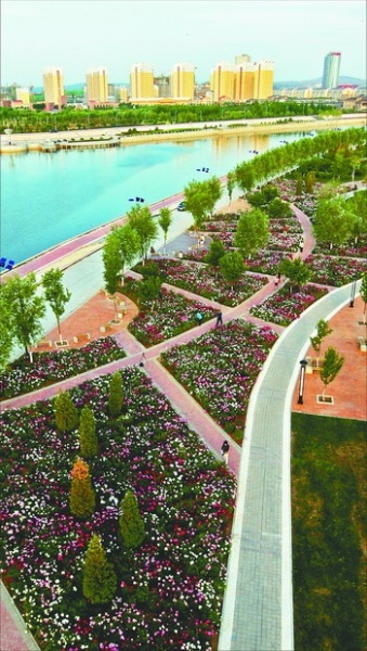 图:赤峰建设“草原林城”,实施绿化工程,为市民享受良好生态提供便利。截至目前,赤峰市主要区域已落实栽植大规格苗木3.27万株。