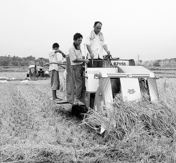 图:10月16日,江西省兴国县长冈乡上社村农民在机收晚稻。兴国县37万余亩晚稻相继成熟,收割接近尾声。 刘厚锋摄