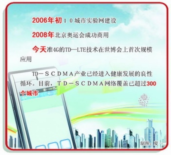 “用户数达1000多万,虽然相对于超过8亿的手机用户而言微不足道,但对于我国自主的年轻标准而言已经相当不易。”TD—SCDMA产业联盟秘书长杨骅说。如今,TD—SCDMA网络已覆盖全国300多个城市,这个全新的产业5年间实现了跨越式的发展。从2006年初的10城市实验网建设,到2008年北京奥运会的成功商用,再到今天准4G的TD—LTE技术在世博会上首次规模应用,TD—SCDMA产业已经进入健康发展的良性循环。