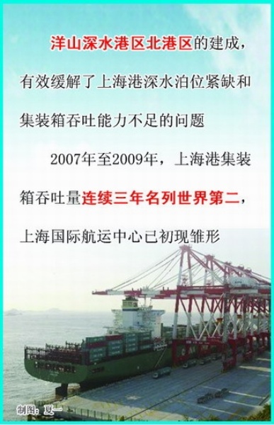 洋山深水港区北港区的建成,有效缓解了上海港深水泊位紧缺和集装箱吞吐能力不足的问题。2007年、2008年、2009年,上海港的集装箱吞吐量连续三年名列世界第二位,上海国际航运中心已初现雏形。