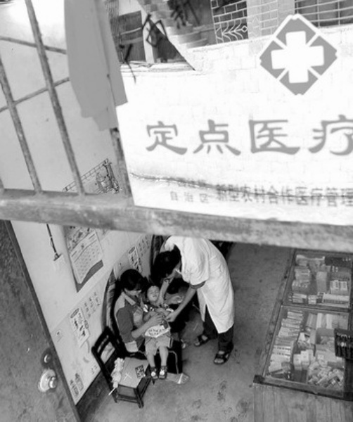 在广西大化县雅龙乡镇西村,村民带着“新农合一卡通”在农村卫生室看病。从2010年1月份开始,广西河池市大化县在部分乡村率先建立起县、镇、村三级联网的“新农合”管理网络,实施了“新农合一卡通”信息化管理,大大降低了农民就医和报销费用的时间。 新华社记者 黄孝邦摄