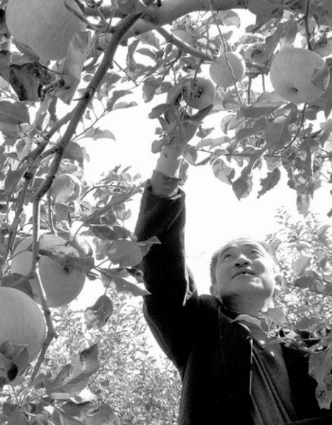 在陕西省延安市宝塔区,40万亩山地苹果即将上市,仅山地苹果一项,今年可为当地农民增收4亿多元。图为宝塔区柳林镇后扎家沟村果农杨振雄正在采摘。 本报记者 夏先清摄