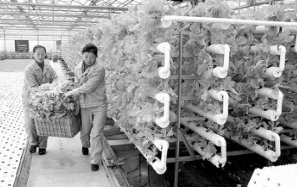 在临颍县南街村集团的无公害蔬菜生产基地,工人们在采摘准备远销外地的无土栽培蔬菜(资料照片)。 据统计,目前河南省各类农业产业化组织达到13000多个,形成了一批农业产业化龙头企业,初步实现了由“卖原粮”到“卖产品”、由“中国粮仓”到“国人厨房”的转变。 新华社记者 王 颂摄