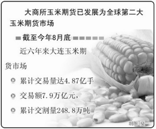 本报讯 记者刘溟报道:大商所玉米期货从2004年9月恢复交易以来,发展迅速、运行稳健,已经稳居全球第二大玉米期货市场。截至今年8月底,最近6年来大连玉米期货市场累计交易量达4.87亿手,交易额7.9万亿元,累计交割量248.8万吨,没有发生一例交割违规事件。今年至8月底,玉米成交量已达2455万手,约为美国芝加哥商品交易所同期玉米交易的30%;成交额4727亿元,比上年增长18.5%。这组数据是大商所总经理刘兴强在日前召开的第四届国际玉米大会上披露的。