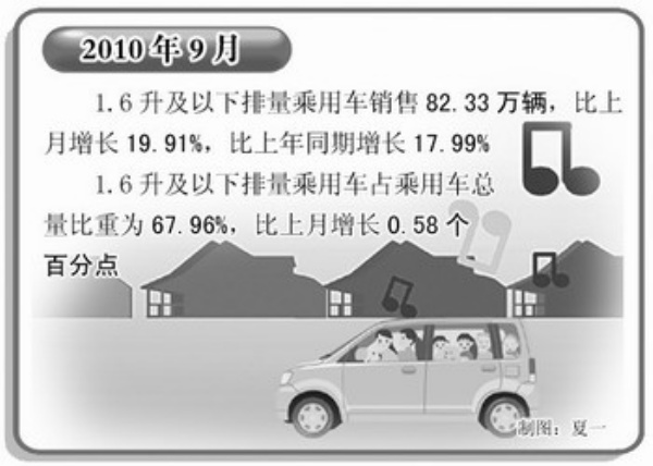 分析9月汽车旺销的原因,国家信息中心信息资源开发部主任徐长明将首要因素归结为国家“节能产品惠民工程”节能汽车推广目录的发布和实施。“补贴政策对车市销售的拉动不光体现在目录的1.6升及以下排量乘用车,它还促使其他暂时不在目录上的小排量车型的价格松动,从而带动车市的全面增长。”根据统计,9月1.6升及以下排量乘用车共销售82.33万辆,比上月增长19.91%,比上年同期增长17.99%,1.6升及以下排量乘用车占乘用车总量比重达67.96%。该政策有利拉动了汽车销售,并促进了汽车消费结构的优化。