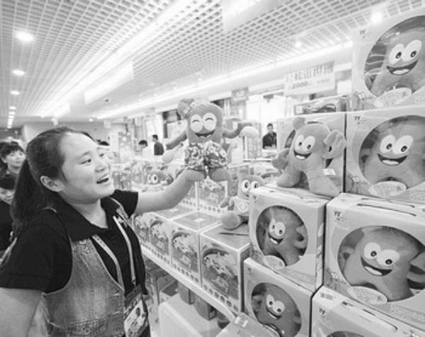 世博园区的各个特许商品专卖店内,总是挤满了前来选购世博纪念品的游客。从钥匙挂链到世博纪念金条,造型独特、种类多样的世博商品总能满足不同层次的消费人群。除了憨态可掬的吉祥物“海宝”最有人气外,纪念章、文化衫等商品尤其受到人们的喜爱。