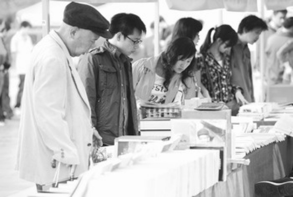 10月17日,几位市民正在书市上选购图书。当日,以“打击盗版、净化市场”、“读黔版图书,爱多彩贵州”为主题的“金秋书市”在贵阳市人民广场举行。此次书市共有70余家书商参加,销售各类图书千余种,吸引了大量市民前来读书、购书。 新华社记者 刘 续摄