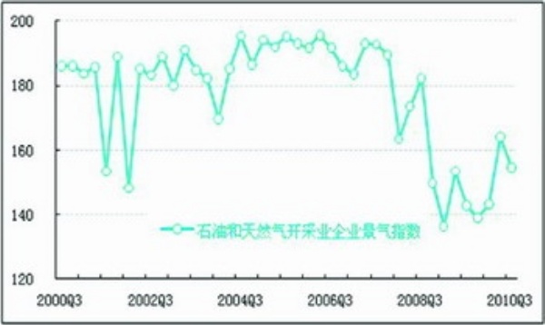 企业景气:2010年三季度石油和天然气开采业企业景气指数为154.7点,较上季度下降9.5点。