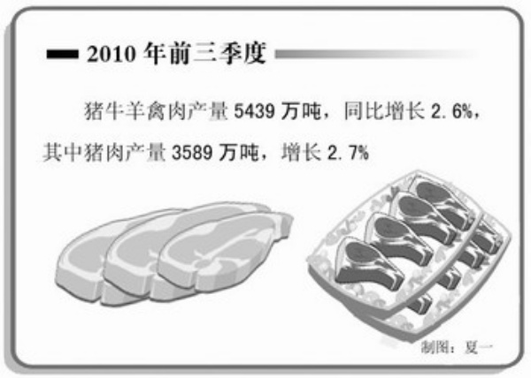 全年粮食产量有望再获丰收。前三季度,猪牛羊禽肉产量5439万吨,同比增长2.6%,其中猪肉产量3589万吨,增长2.7%。