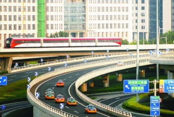 图2 : 首都机场快轨的正式通车,使车流饱和不堪重负的现有机场高速路的交通压力得到有效缓解。