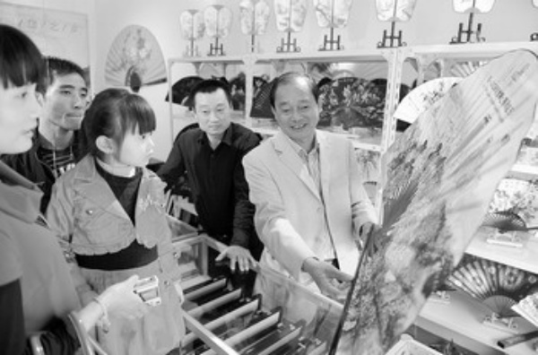 10月19日,广德县一家竹扇企业在竹产品推介会上展示巨型竹扇。