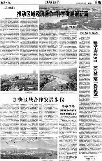 “黄河金三角的形成由来已久,近几年区域内快速协调发展。”三门峡市委书记李文慧介绍,如今,试验区内的大格局已经基本形成,三省四市规划同筹,交通同网,产业同步,同谋互利共赢。豫晋陕黄河金三角区域协调发展综合试验区是全国惟一一个打破省际行政区划的试验区,是全国惟一一个欠发达地区的试验区,填补了国家区域协调发展和中西部欠发达地区无试验区的空白,填补了河南、山西、陕西无试验区的空白,对国家实施区域协调发展、中部崛起、西部大开发战略具有重大的现实意义。