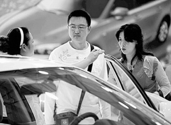 10月16日,参观者在青岛车展上了解相关信息。当日,两场秋季车展同时在青岛举行,规模大大超越往届,各经销商更是在促销上下足了功夫,抢夺商机。