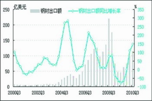 今年6月,财政部与国家税务总局联合发布了《关于取消部分商品出口退税的通知》,规定自2010年7月15日起,取消406种商品的出口退税。本季度以政策效应为主的随机因素已表现出对钢材出口的抑制效应,预计此种影响将在未来一段时间持续存在。