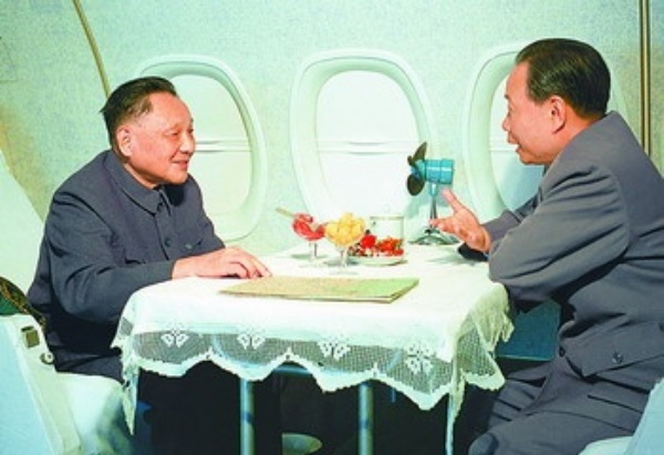 图②:1978年9月8日,邓小平同志和彭冲同志在飞机上。