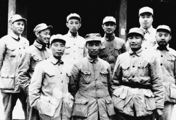 图③:1948年,彭冲(前左)、江渭清(前中)、钟国楚(前右)等同志合影。