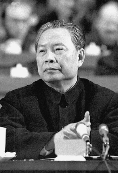 图⑤:中国人民政治协商会议第五届全国委员会第一次会议于1978年2月24日至3月8日在北京举行。五届政协副主席彭冲在主席台上。