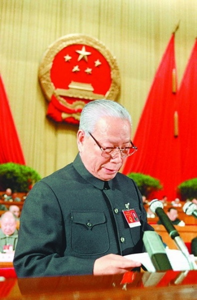 图⑥:1989年3月28日,全国人大常委会副委员长彭冲在七届全国人大二次会议上作人大常委会工作报告。
