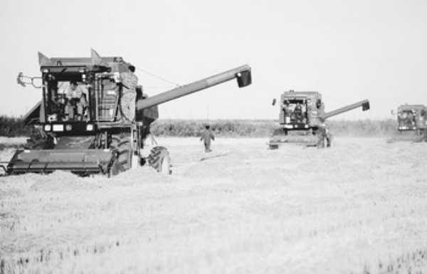 在黑龙江省八五六农场,几台大型拾禾机械在进行拾禾作业(9月17日摄)。 10月28日,记者从黑龙江省政府召开的新闻发布会上获悉,今年素有“北大仓”美誉的中国最大商品粮基地黑龙江省,克服气象条件不利、各类农业灾害多发等不利因素影响,粮食产量突破千亿斤,再创历史新高。 新华社记者 王建威摄