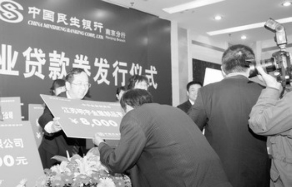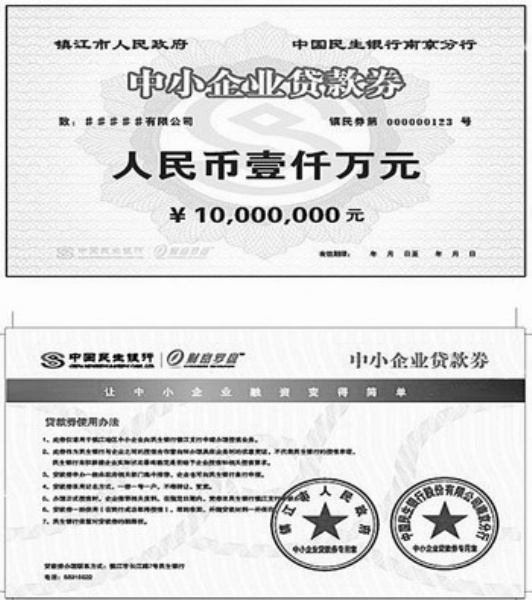 所谓“中小企业贷款券”,是民生银行南京分行联合镇江市政府,向该地区重点支持的优质中小企业发行的银行授信合作意向凭证。自今年4月29日以来,民生银行南京分行已集中发放两期“贷款券”,累计发券金额10.2亿元,实际贷款金额达9.6亿元,使一大批中小企业获得了方便、快捷的信贷服务。