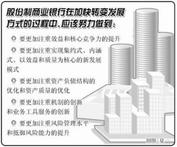 首先,我国实施加快经济发展方式转变和经济结构调整的战略将对股份制商业银行和银行业的发展带来非常深远、非常重大和非常深刻的影响。这些发展方式的转变和经济结构的调整,直接影响银行业监管政策和信贷政策,也进一步影响银行业信贷投向和结构,以及贷款存量和质量的变化。