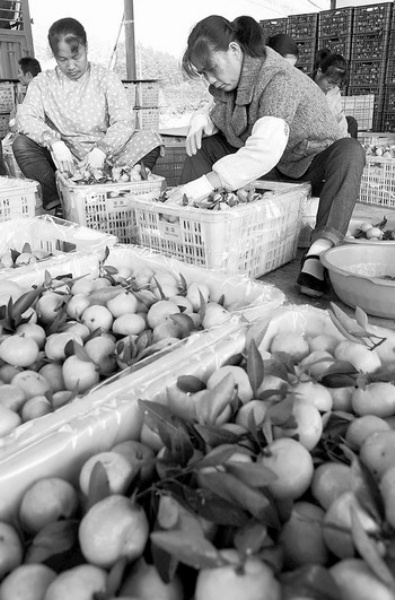 在广西柳城县大埔镇邬家屯,果农正在将新鲜的蜜橘装箱,准备出口到俄罗斯。时下,广西柳城县蜜橘成熟,来自江西等地的数百名收购商云集柳城,到果园收购蜜橘,部分蜜橘通过果商远销俄罗斯、越南等地。柳城县生态蜜橘种植面积达12万亩,预计今年产量将突破20万吨。蜜橘产业带动了旅游、加工、包装、运输、农资等相关产业的发展,农民的“钱袋子”也因此鼓起来。