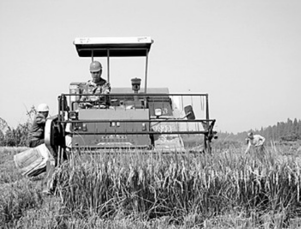湖南省岳阳市湘阴县农户正在使用收割机收割晚稻。湖南省农业厅提供的数据显示,2010年湖南晚稻面积为2924万亩,比去年增加81万亩。 新华社记者 龙弘涛摄