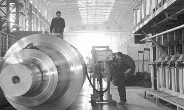 图3:中国一重致力于为国民经济提供高质量的重大技术装备。图为技术人员对轧辊电站产品进行应力测试。 (资料图片)