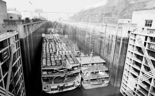 11月3日,在湖北宜昌三峡大坝处,满载货物的船舶驶进三峡五级船闸北一闸上行。三峡工程10月26日蓄水至175米后,三峡船闸运行正常。 郑家裕摄(新华社发)