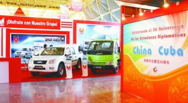 图为古巴哈瓦那国际博览会“中国馆”拍摄的汽车展位。日前,为期6天的第28届哈瓦那国际博览会在古巴展览中心开幕,来自古巴及世界58个国家和地区的1800个参展商参加了本届博览会。中国是此次参展规模第三大的国家,展示了汽车、家电、机电、五金、轻工、食品等十几个领域的产品和技术。哈瓦那国际博览会自1983年创办,目前已成为拉美及加勒比地区最重要的产品交易会之