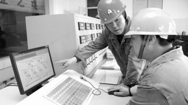 上图 10月8日,新疆哈密供热公司工作人员在总控制室观察供热情况。