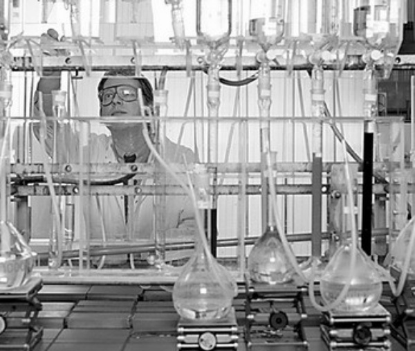 图为一名朗盛公司离子交换树脂业务部的研究人员正在查看实验仪器。