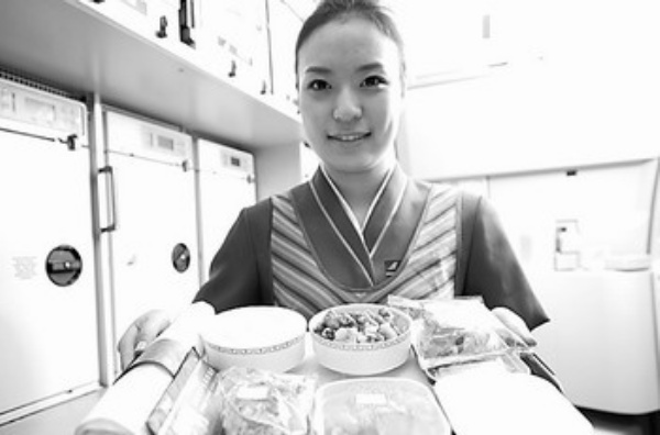 一名空姐展示刚刚制作完成的“亚运特餐”。 新华社发 徐勤涛摄