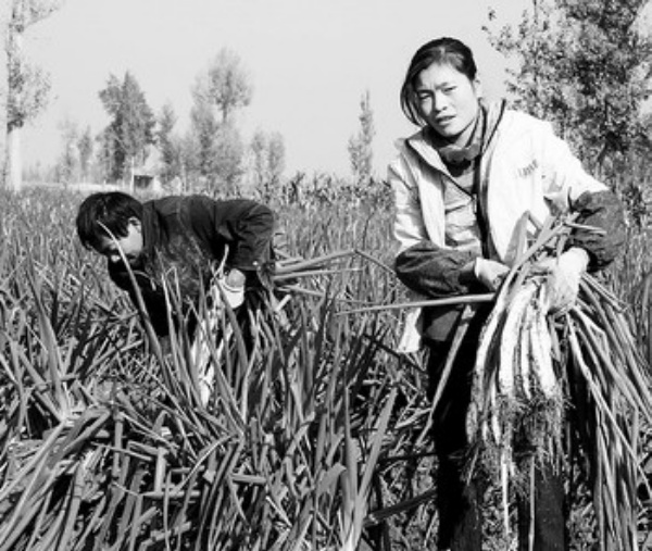 甘肃张掖市甘州区碱滩镇碱滩村的农民正在收获复种大葱。今秋,甘州区复种的4.64万亩农作物全面丰收,吸引了各地客商前来选购。 本报记者 李琛奇 通讯员 朱兴忠摄影报道