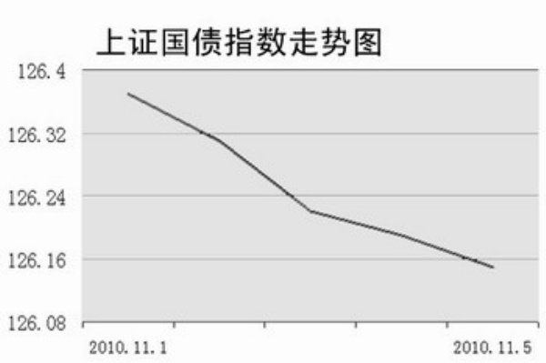 受多种因素影响,近期债券市场走势较弱。11月5日,上证国债指数收于126.15点,较上周下跌了0.19点,11月1日至11月5日共成交了21.42亿元,比前一周增长5.78亿元。上交所企债市场也稍有回落,11月5日上证企债指数收于142.99点,较前一周下跌了0.26点,11月1日至11月5日共成交29.77亿元。另外,深证企债指数11月5日收于129.14点,较上周下跌0.34点。