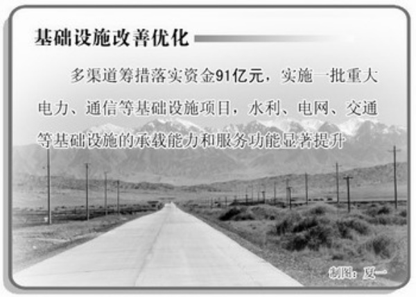 如今的柴达木盆地基础设施建设今非昔比。海西州紧紧抓住国家和省里加大基础设施建设有利时机,以改善发展环境为重点,多渠道筹措落实资金91亿元,实施了一批重大电力、通信等项目,水利、电网、交通等基础设施的承载能力和服务功能显著提升。交通方面,青藏铁路西格段增建二线工程、乌兰焦化工业园铁路专用线、格尔木至老茫崖二级公路、315国道绿草山至黄瓜梁、当金山至黄瓜梁西部通道等交通运输项目建成投运,当金山至大柴旦、察汗诺至德令哈等6条高速公路开工建设;电网方面,330千伏湟源—德令哈—格尔木、格尔木至甘森,110千伏乌兰至德令哈II回路、锡铁山—鱼卡、热水—江仓木里专属供电区输变电工程等项目建成投入使用,大电网覆盖面积达25万平方公里,保障能力进一步提高;水利方面,开工建设下湾水库和格尔木河、巴音河、布哈河河道治理工程;园区设施方面,德令哈、格尔木、东部、西部四个工业园区水、电、路、通讯等基础设施项目陆续开工建设和建成投运,重点工业园区基础设施条件得到明显改善,使长期困扰试验区发展的“瓶颈”制约得到缓解,为试验区集聚产业、又好又快发展奠定了坚实的基础。