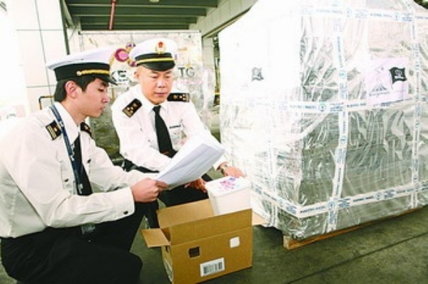 广州白云机场海关快速验放两批从韩国空运入境的亚运电视转播设备。 张润贵摄