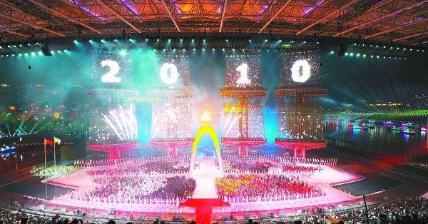 22时09分,国务院总理温家宝宣布:第十六届亚洲运动会开幕!顿时,璀璨的焰火绽放夜空,激昂的旋律响彻全场,欢呼声经久不息。